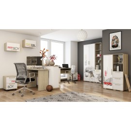Мебель из коллекции Колибри - универсальное решение для создания детской комнаты как для мальчика, так и для девочки. Сочетание каркаса в цветедуб сонома с декором ателье светлое и белый акрил визуально облегчает интерьер, а рисунок на фасаде мебели, нанесенный методом фотопечати, делает ее оригинальной. Данный комплект прекрасно впишется в компакт..