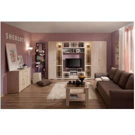 Классика никогда не выйдет из моды. Для ценителей долговечной мебели в классическом исполнении создана коллекция для гостиной Sherlock. Вы не отстанете от модных тенденций, ведь мебель выполнена в трендовом декоре с имитацией текстуры древесного рисунка. Светлое исполнение, четкие геометрические формы и линии, рамочные фасады, декорированные раскла..