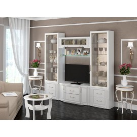 В комплект входит:39 Шкаф комбинированный «Виктория»,37 Тумба для телеаппаратуры «Виктория» 40 Шкаф для посуды «Виктория»,41 Полка навесная «Виктория» * 2 шт. Модульная серия «Виктория» выполнена в стиле «Классика». Особенность серии - фасады МДФ сфрезеровкой, петли с доводчиком на всех фасадах, шариковые направляющие, ручки металлические с белой в..