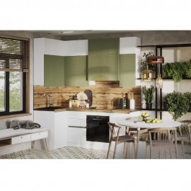 Светлая и компактная готовая кухня с эко-мотивами. Корпус выполнен из высококлассной ЛДСП 16 мм, фасады – из ЛМДФ 16 мм. Угловая конфигурация гарнитура позволит Вам рационально использовать пространство кухни и организовать удобную рабочую зону, зону мойки и сушки посуды, а также место хранения бытовой утвари и продуктов. Особенности дверные петли ..