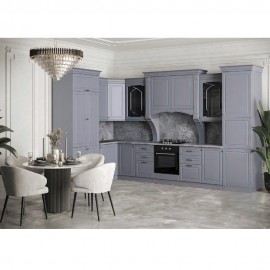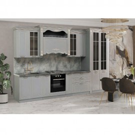 Готовая кухня Вирджиния - воплощение лучших характеристик классического стиля на Вашей кухне. Поверхности гарнитура выдержаны в приятном сером цвете и гармонично дополнены рамочным рисунком на фасадах, объемными карнизами и орнаментом. Размер – 2.8х2.47 м. Внимание, боковой шкаф со стеклянными дверцами в комплект не входит! В комплект входят: - ни..
