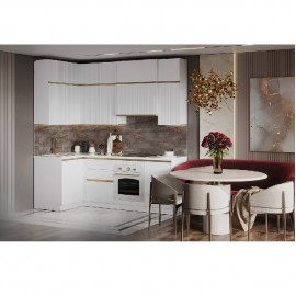 Готовый гарнитур Эвелин подойдет как для современных интерьеров, так и для классической обстановки. Увеличенная высота верхних шкафов обеспечивает максимальную вместимость, а угловая конфигурация кухни позволяет рационально использовать каждый свободный метр. Размеры кухни – 2.33х1.2 м. Особенности дверные петли с доводящим механизмом влагостойкая ..