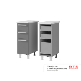 ОПИСАНИЕ ПРОДУКТА Корпус: ЛДСП Фасад: МДФ Опора кухонная 100 мм — 2 шт. Опора кухонная черная под клипсу 100 мм — 2 шт. Ручка БТС-192 мм, 3 шт. 2 ящика — размеры по фасаду 296х176 мм 1 ящик — размеры по фасаду 296х396 мм..