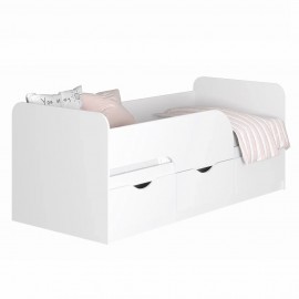 Кровать Стандарт выполнена в современном стиле, который подойдёт для любого интерьера детской. Модель комплектуется тремя вместительными ящиками, в которых вы можете разместить игрушки, постельное белье и даже одежду ребенка. На фасадах ящиков отсутствует лицевая фурнитура для большей безопасности детей. Особенности: Спальное место: 1860х800 мм Га..