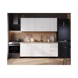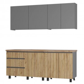 Универсальный дизайн кухни легко адаптируется под различные интерьерные решения. Фотопечать «рейки» создают иллюзию фактурности. Высокие ножки позволяют без труда поддерживать чистоту на кухне с помощью робота-пылесоса. Особенности: — Материал корпуса: ЛДСП — Материал фасада: ЛДСП — Толщина кромки — 0,45 мм. — Опора — квадратная, 50*50*100, опора 1..