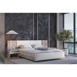 Двуспальная кровать «Фиеста» выполнена из высококачественной ЛДСП в декоре «дуб крафт белый». Изголовье — ЛДСП цвета «графит» 16 мм. Отсутствие ножек избавит вас от скопления пыли под кроватью. Данная модель выпускается на фабрике без основания. Основание приобретается отдельно – проложки ДСП. Кромка — 0,45 мм. Опоры – подпятник, пластик. Рекоменду..