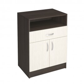 Компактная тумба для входной зоны. Имеет открытую полку, выдвижной ящик на роликовых направляющих, а за распашными фасадами скрывается вместительная ниша. Вы сможете организовать хранение домашней и уличной обуви, вещей в сложенном виде, а также мелочей, которые нужны в прихожей. Особенности корпус и фасад из ЛДСП в декоре венге/дуб белфорд пласти..