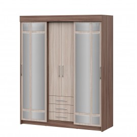 Со шкафом-купе Фортуна Вы организуете продуманное хранение любой одежды: от вещей в сложенном виде до деликатных изделий, которые необходимо хранить на плечиках. Ящики можно использовать для постельного белья, аксессуаров и других личных вещей. Особенности ЛДСП с древесным рисунком ручка – хромированный пластик зеркало с фацетной обработкой края р..