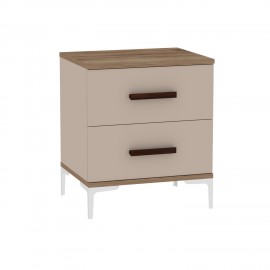Тумба с двумя ящиками в спальню из коллекции Кара на металлических опорах отлично украсит спальню и добавит уюта. Особенности фигурные металлические опоры 2 выдвижных ящика шариковые направляющие плавного выдвижения низ и столешница из контрастной плиты ЛДСП дуб табачный..