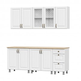 Готовая кухня Прованс — компактное и функциональное решение для вашего дома. Все фасады универсальные. Кухня комплектуется опорами, регулируемыми по высоте. Столешница, стеновая панель, а также дополнительное оборудование (мойка, смеситель, бытовая техника) приобретаются отдельно. Ручки в комплекте. Данная кухня доступна также в качестве модульной ..