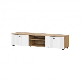 Тумба под телевизор с открытой нишей Милан украсит интерьер гостиной и не перегрузит интерьер. Сочетание открытого и закрытого типа хранения выглядит оригинально и позволяет разместить не только телеаппаратуру, сопутствующую технику, но и книги, журналы, небольшие предметы декора. Особенности корпус ЛДСП дуб золотой фасад МДФ в пленке ПВХ белый ма..