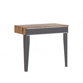 Туалетный стол Моника по достоинству оценят любительницы держать свой внешний вид под контролем. Во вместительном ящике найдется место для косметики и аксессуаров. Вы можете расположить над столиком навесное зеркало, чтобы завершить комплект. Особенности каркас: ЛДСП Авелано фасад: ЛДСП Авелано декор: МДФ Графит антистрейч супермат выдвижной ящик с..