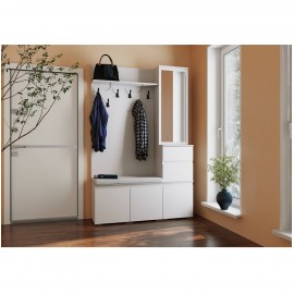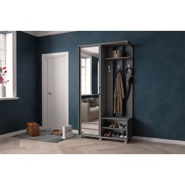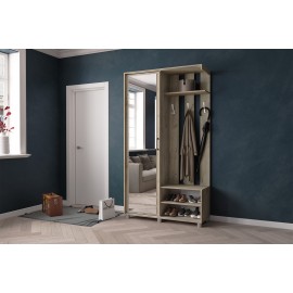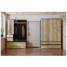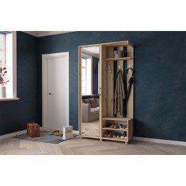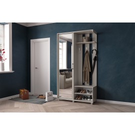 Готовое решение для прихожей Ларго-2 сочетает в себе универсальный дизайн, компактный размер и продуманное наполнение. Модуль оснащен евроштангой за зеркальной дверцей для верхней одежды на плечиках, 2-мя закрытыми полками, открытой тумбой под обувь, 3-мя надежными крючками и верхней полкой для аксессуаров. Это отличный вариант для организации хран..