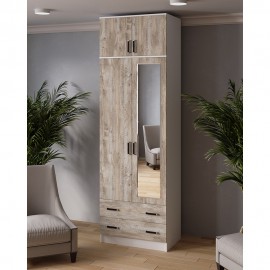 Шкаф с зеркалом и антресолью Лагуна 80 см, белый/дуб юкон