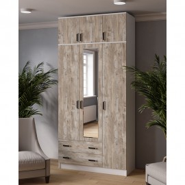 Шкаф с зеркалом и антресолью Лагуна 120 см, Дуб крафт серый, Кашемир