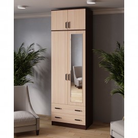 Шкаф с зеркалом и антресолью Лагуна 80 см, венге/дуб молочный