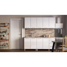 Корпус всех модулей выполнен из ЛДСП белого цвета с тиснением «Древесные поры» Фасады из плиты МДФ, облицованные высококачественной глянцевой пленкой ПВХ толщиной 0,45 мм..