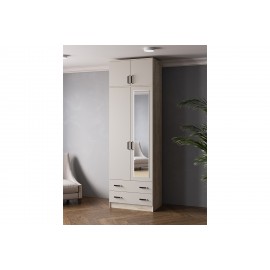 Шкаф с зеркалом и антресолью Лагуна 80 см, Дуб Делано, Белый