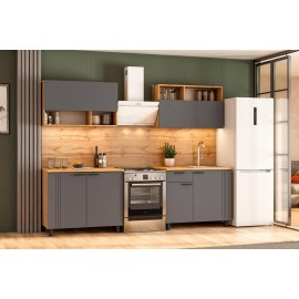Кухонный гарнитур Монако — идеальное решение для вашей кухни. Длина кухонного гарнитура составляет 2 метра. Цветовое решение: дуб золотой, графит— добавит изысканности и стиля интерьеру. Гарнитур состоит из удобных шкафов, ящиков и столешниц, обеспечивая максимальную функциональность и комфорт при готовке. Верхние шкафы можно устанавливать как свер..