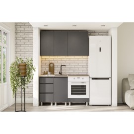 Готовый кухонный гарнитур КГ 1 1600 см из ЛДСП с продуманным наполнением и столешницей в черном цвете толщиной 26 мм. Отсутствие ручек на фасадах верхних модулей — это не только визуально привлекательно и подчеркивает минимализм, но и удобно при уборке. Отсутствие ручек акцентирует внимание на стиле и делает кухню современной. Особенности: — Матери..