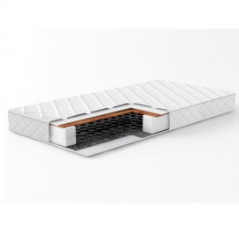 Анатомический матрас. Жесткость средняя/ниже средней. Высота 19 см. Max нагрузка — 110 кг. Зависимый пружинный блок. Состав матраса: 1. Система комфортности — синтетический жаккард, стеганый на синтепоне и спанбонде 2. Анатомическая пена Orto Flex 10 мм 3. Кокосовое полотно 4. Зависимый пружинный блок Bonnell 5. Термовойлок 6. Анатомическая пена Or..