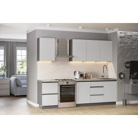Кухонный гарнитур Альмерия — практичный комплект длиной 2,0 метра в современном стиле. – Верхние модули: ШВ 500, ШВ 500, ШВС 500, ШВС 500 (ВхГ) 715х300 мм – Нижние модули: ШНМ 500, ШН 500, ШНЯ 500, ШН 500 (ВхГ) 841х470 мм, высота указана с учётом столешницы Особенности: – Материал корпуса: ЛДСП – Материал фасада: МДФ – Ручка: Пластик – Направляющие..