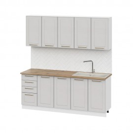 Кухонный гарнитур Айден — практичный комплект из ЛДСП длиной 1,8 метра в современном стиле. Особенности: — Корпус: ЛДСП — Фасад: ЛДСП — Шариковые направляющие — Лицевая фурнитура отсутствует — Столешница 26 мм: Сосна бискайская – Верхние модули: ШВ 600-1, ШВ 600-1, ШВ 600-1 (ВхГ) 715х300 мм – Нижние модули: ШНМ 600-1, ШН 600-1, ШН3Я 600 (ВхГ) 841х4..