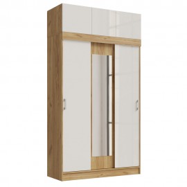 Шкаф с антресолью Бася/Роджина, Белый глянец холодный, Дуб крафт