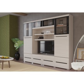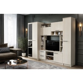 Гостиная Эколь — современная модульная система для стильного и удобного интерьера. Шкафы предлагают максимальное наполнение и удобство сборки. Боковые части изделий делают интерьер эстетичным, а шариковые направляющие ящиков обеспечивают комфорт использования. Особенности: — Материал каркаса: ЛДСП — Материал фасада: МДФ / Стекло — Направляющие: Ша..