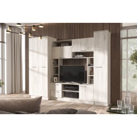 Стенка в гостиную Флора — это многофункциональный элемент интерьера, который сочетает в себе как практичность, так и эстетическую привлекательность. Она состоит из различных модулей, таких как полки, шкафы и место для телевизора. Особенности: — Материал каркаса: ЛДСП — Материал фасада: ЛДСП — Дверцы шкафа: Распашные — Направляющие ящиков: Роликовы..