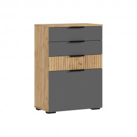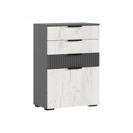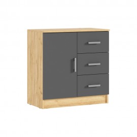 Комод с 3-мя ящиками и дверью Бася, Дуб Крафт, Графит