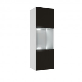 Шкаф со стеклом Флорис ШК-005, Черный глянец, Белый