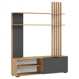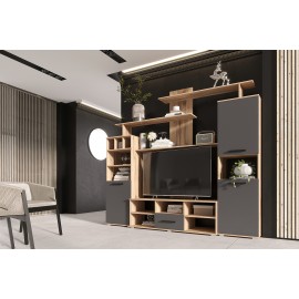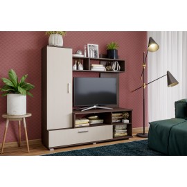 Стенка в гостиную Мини-2 — это многофункциональный элемент интерьера, который сочетает в себе как практичность, так и эстетическую привлекательность. Она состоит из различных модулей, таких как полки, шкафы и место для телевизора. Особенности: — Материал каркаса: ЛДСП — Материал фасада: ЛДСП..