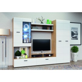 Гостиная Нэнси Вариант №5 (ЛДСП), Белый глянец холодный, Сонома