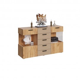 Комод с ящиками из модульной серии Алтея дополнит современный интерьер комнаты. Вместительные ящики и полки позволят организовать место хранения белья и одежды, аксессуаров и других нужных предметов. Особенности: — Материал каркаса: ЛДСП — Материал фасада: ЛДСП / Стекло — Количество ящиков: 5 шт. — Направляющие ящиков: Шариковые — Максимальная нагр..