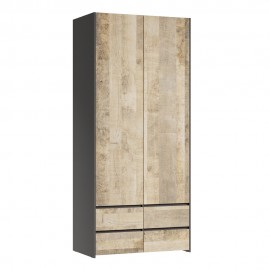 Шкаф двухстворчатый Денвер, Графит, Дуб гранж песочный