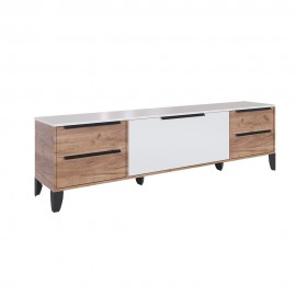 Тумба для ТВ с опорами Малави МТВ-1, Дуб крафт табачный, Белый глянец