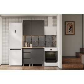 Кухонный гарнитур Ева шириной 1 м — лаконичное оригинальное решение для вашей кухни! — Верхний модуль: 1ОВ1, высота — 720 мм, глубина — 310 мм. — Нижний модуль: 1ОР2, высота — 858 мм (без опор), глубина — 600 мм. Особенности: — Материал корпуса: ЛДСП — Материал фасада: ЛДСП — Направляющие ящиков: Роликовые — Кромка — 0,45 мм. — Столешница в комплек..