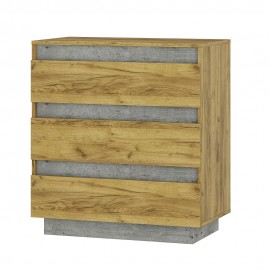 Модульная коллекция для гостиной Эмми выполнена в стиле лофт и отличается сочетанием трендового декора крафт с древесной текстурой и вставками с рисунком под бетон. Оригинальное конструктивное решение коллекции – отсутствие лицевой фурнитуры. Комод оснащен тремя выдвижными ящиками на усиленных направляющих. Особенности материал корпуса – ЛДСП краф..