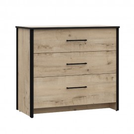 Комод из коллекции Берлин - практичное решение для хранения одежды в сложенном виде, белья и аксессуаров. Модуль выполнен в трендовом декоре "дуб ирландский" с текстурой натурального дерева. Имеет 3 широких выдвижных ящика с тонкими черными ручками. Высококлассный ЛДСП, из которого изготовлен модуль, гарантирует долгий срок его службы. Особенности:..