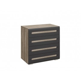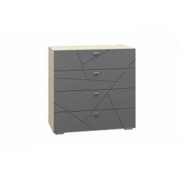 Вместительный комод с 4-мя ящиками. Идеален для хранения белья и вещей в сложенном виде. Характеристики: Размер, мм: 802х790х460 Материал: ЛДСП/МДФ Цвет: Дуб каньон/Графит нубук Особенности: трендовый дизайн матовый фасад цвета графит ручки с декором под дубовый спил хорошая вместимость..