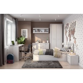 Модульная серия мебели для детской и подростковой спальни. - Широкий выбор модулей: функциональные кровать-чердак и односпальная кровать, прикроватная тумба, разнообразие вместительных шкафов, угловое завершение, комод, навесная секция, письменный стол и стол с надстройкой. - Классические цвета исполнения Ясень шимо/Дуб Сонома в сочетании с дизайне..