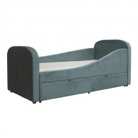 Односпальная кровать Юлик совмещает в себе визуальную привлекательность и максимальную функциональность. Модель обтянута износостойким микровелюром в трех цветах на выбор. Ящик для белья и матрас в комплекте. Особенности габариты: 200х90х88 размер спального места, см: 180х75 материал обивки – микровелюр Newton Aqua Blue 1 кат..