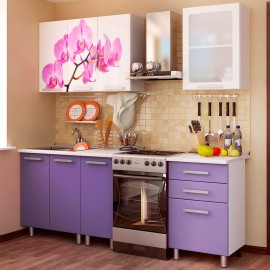 ОПИСАНИЕ ПРОДУКТА Корпус: ЛДСП Фасад: МДФ Верх: шкаф 800, шкаф 800, шкаф 400 Низ: стол 800 под мойку (со столешницей), стол 800, стол 400 с ящиками Кухня Люкс Акварель Цвет корпуса: белый Цвет фасада: МДФ «лиловый сад» Цвет столешницы - Антарес..