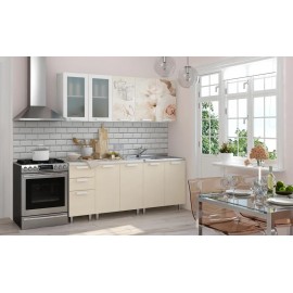 Выигрышная комбинация кремового цвета с декором в теплых тонах дарит легкость восприятия помещения и положительные эмоции его обладателям. Изображение нанесенное на фасады кухни при помощи фотопечати, дает ощущение полноты жизни и счастливой беззаботности. Нежность розы дополняет атмосферу мягкостью. Корпус ЛДСП Белый Фасад МДФ Кремовый / Глянец бе..
