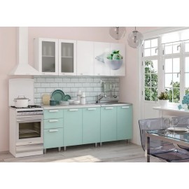 ОПИСАНИЕ ПРОДУКТА Корпус: ЛДСП Фасад: МДФ Верх: шкаф 800, шкаф 800, шкаф 400 Низ: стол 800 под мойку (со столешницей), стол 800, стол 400 с ящиками Кухня Люкс Прима Цвет корпуса: белый Цвет фасада: МДФ «патина мятная» Цвет столешницы - Антарес..