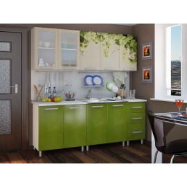 ОПИСАНИЕ ПРОДУКТА Корпус: ЛДСП Фасад: МДФ Верх: шкаф 800, шкаф 800, шкаф 400 Низ: стол 800 под мойку (со столешницей), стол 800, стол 400 с ящиками Кухня Люкс Лоза Цвет корпуса: белый Цвет фасада: МДФ «зеленый лед» Цвет столешницы - Антарес..