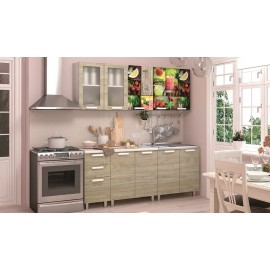 Яркая,стильная и современная кухня "Санрайс" станет настоящим украшением Вашего дома. Сочные образы верхних фасадов, нанесенные при помощи фотопечати, стеклостворки в МФД рамке и декор натурального дуба на нижних фасадах с покрытием soft touch создадут неповторимый коктейль Вашего интерьера. Корпус ЛДСП Белый Фасад МДФ, Дуб софт тач/Фотопечать Сост..