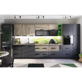 В комплект входят:ШП600, ШП 400, ШНБ 200, ШС 800, ШВС 800х, ШВ 800х, ШНМ 800, ШНГК 800, ШВ 600х,ШНГ 600,ШВ 500,ШН 3я 500. Современная кухня “КРАФТ” с фасадами из ЛДСП цвета “Дуб Вотан” и “Дуб Эндгрейн необработанный” и из плиты МДФ, облицованными высококачественной матовой пленкой ПВХ “Темный бетон". Реалистичный, энергичный рисунок древесины с фил..