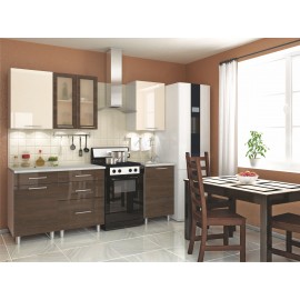 Компактный гарнитур Танго шириной 1600 мм стильное и функциональное решение для обустройства Вашей кухни. Цветовое исполнение в двух дополняющих друг друга теплых оттенках «ваниль» и «шале мореный» создаст атмосферу уюта и тепла в помещении. Глянцевые фасады, стилизованные под рейлинги ручки и лаконичность комплекта идеально вписываются в концепци..